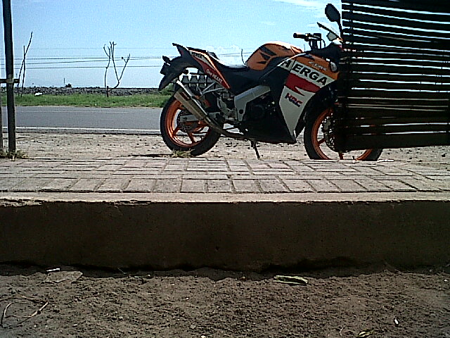 Mungkin karena sang pemilik bernama Herga. CbR repsol ini parkir di depan warung dekat Dealer Cahaya Yamaha. Begitu rapi huruf HERGA disisi putih CBR. Benar-benar menyatu.