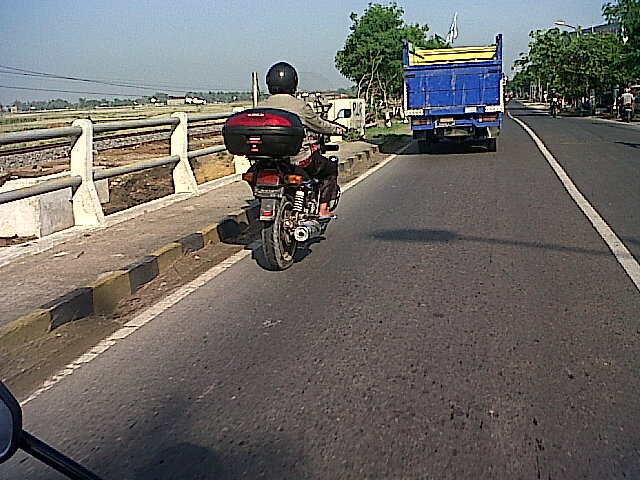 Walaupun bergenre touring, namun bapak ini dalam mengemudikan sepedanya selalu santai dan menghormati pengguna lain. Setiap pagi ane selalu berpapasan ma nih GL. Di depan ada visor yang berfungsi melindungi tubuh bagian depan agar tak kena hempasan angin kencang dari depan. Paru-paru massbrooo. Salut! Keep safety riding.