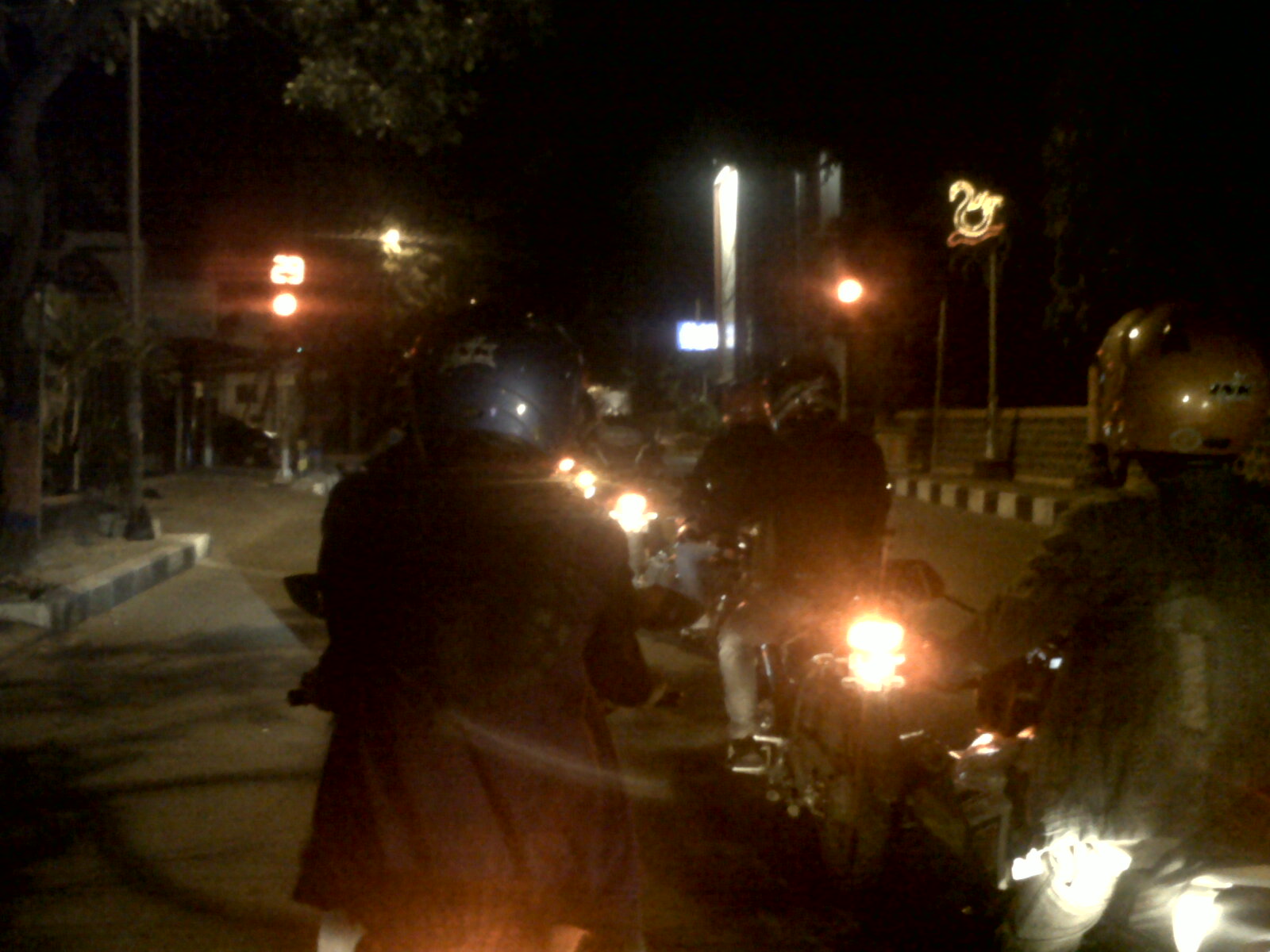 Nah, setelah forum selesai. Kita semua melakukan aktivitas rolling alias keliling bareng mengelilingi kota Bojonegoro. Karena pertama kali ikut touring bareng-bareng kayak gini, ane bingung kang.hehe,,, newbie pisan euy! Walaupun rame-rame, tapi tetap kudu taat aturan lalu lintas kang. Lampu merah ya berhenti nunggu hijau, jangan sruntulan aja. Sip,,,!