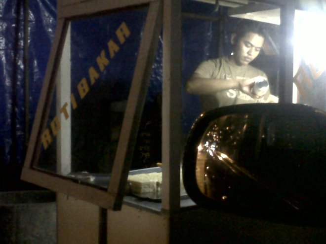 Hujan-hujan beli roti bakar,mantab. Enak loh rotinya, lokasinya dekat bengkel Matahari sumberrejo. Kalo malam pasti buka. 😀