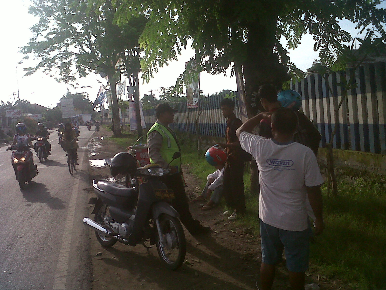 Ini kelanjutan dari perjalanan tadi pagi. Sehabis njebret biker koplak tadi, ane bertemu kerumunan warga, pelajar dan polisi. Wah, ada apa ya? Ternyata ada kecelakaan antara Tukang Becak vs Siswa Pelajar.
