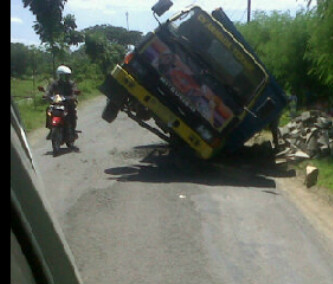 Salah satu fenomena truck style dari dump truck. Yaitu riding dengan satu sisi samping saja. Apakah karena ada seorang biker di sampingnya’kah? Namun, karena muatannya berat jadi gak bisa balik.wkwkwk, 😀