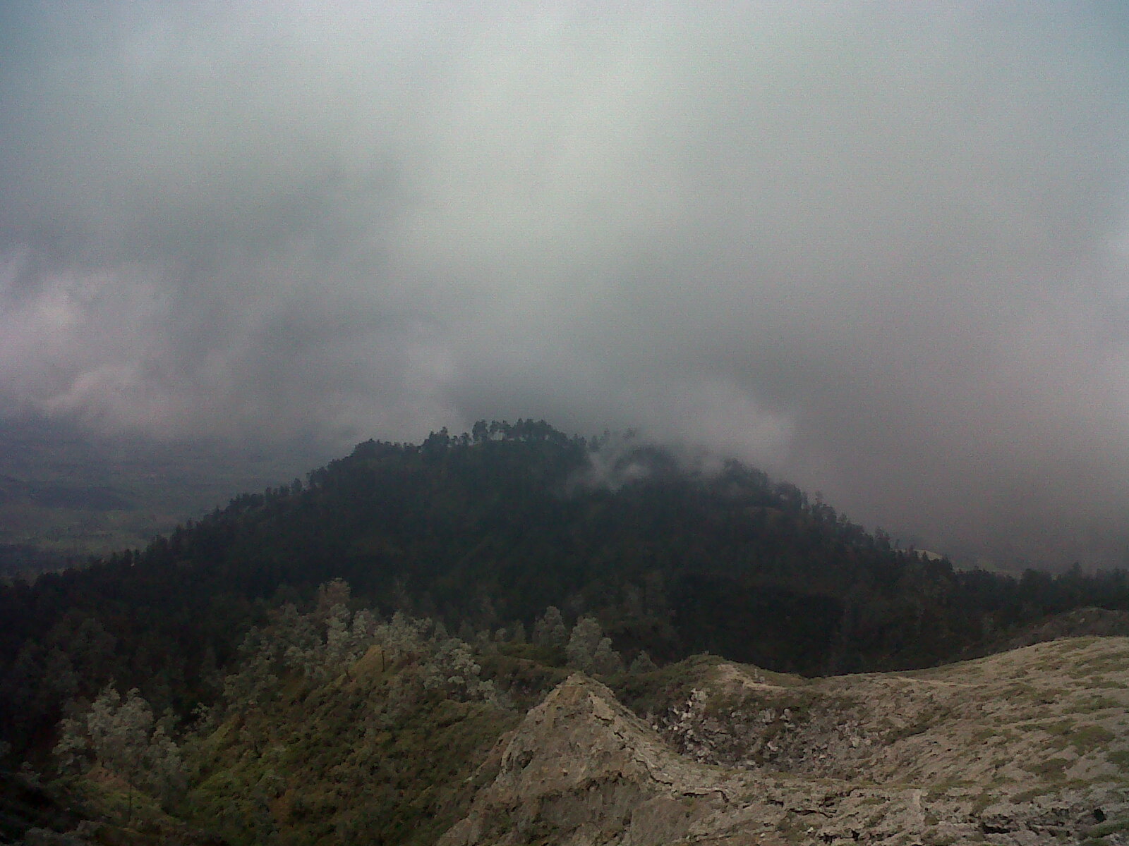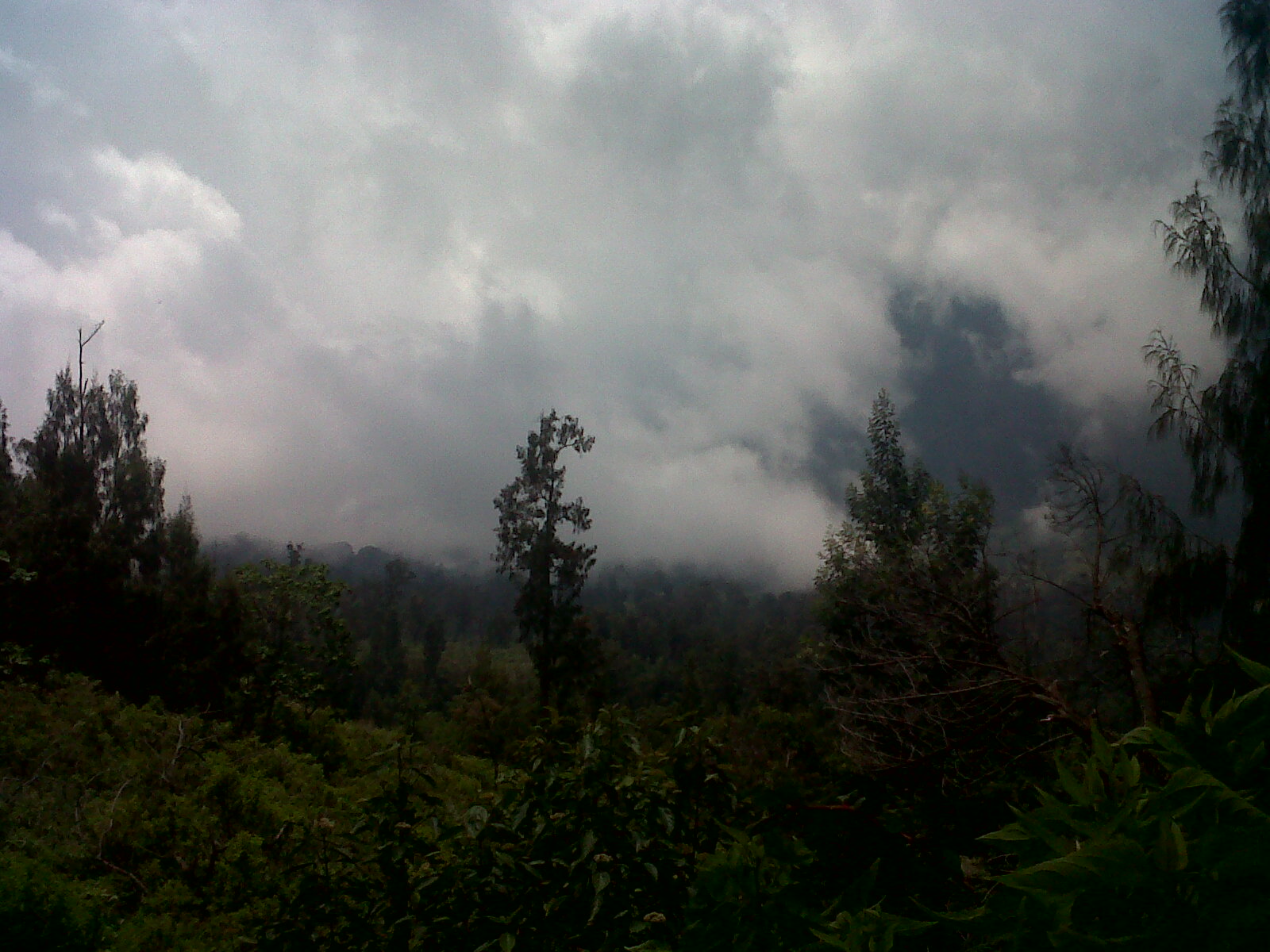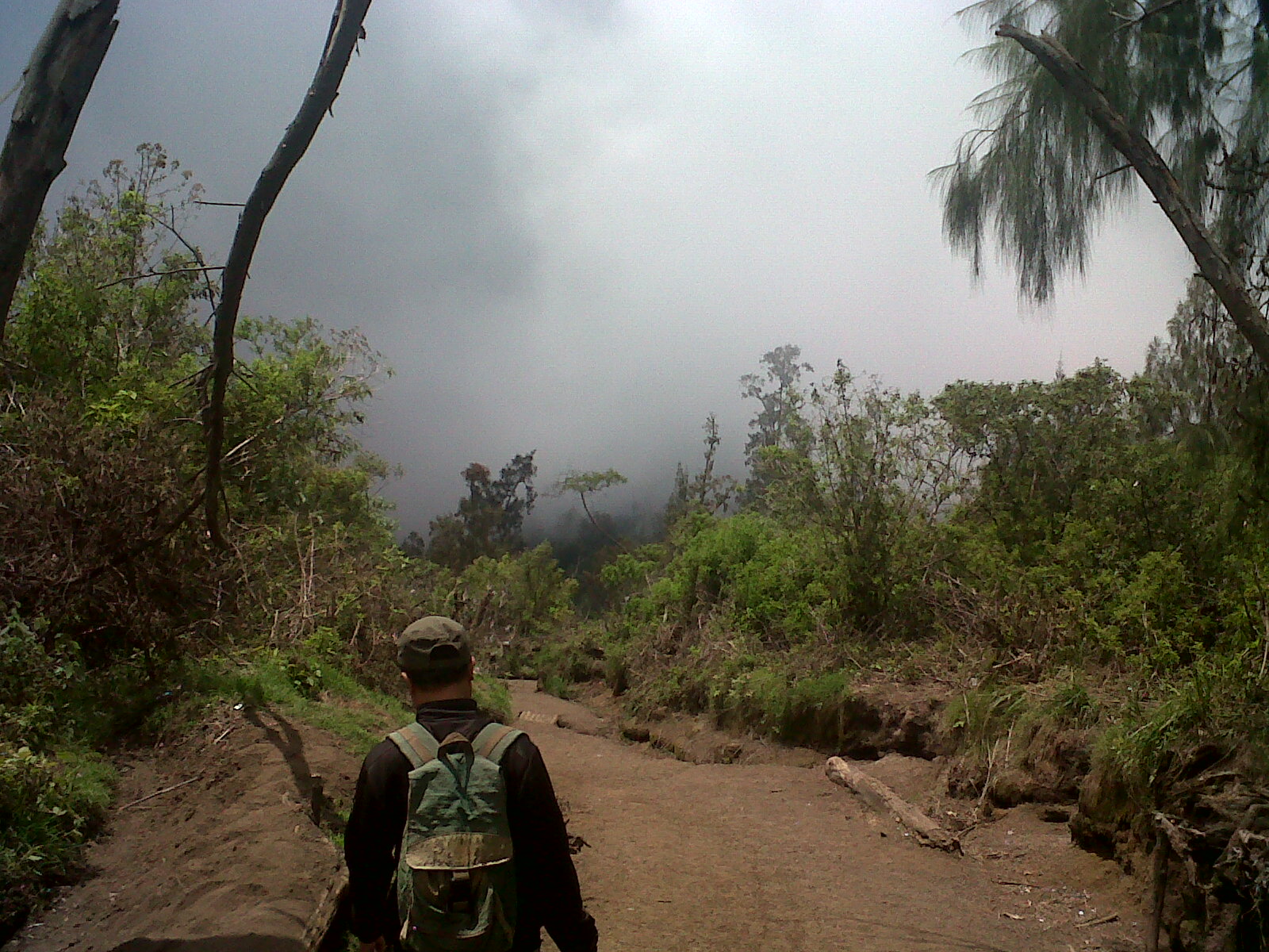Kabut mulai menyerang jalur pendakian dan kamipun menerobos kabut itu. Dingin, bahkan tanah yang ane injak sedingin air dingin. Weleh-weleh. Adem’e rek.
