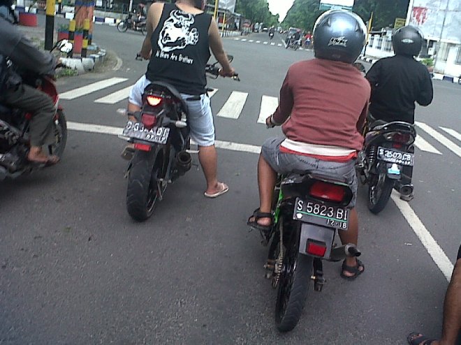 Ada dua modifikasi yang ane jepret dari kawan-kawan YVCI-Bj kemaren. Dua modifikasi yang berbeda genre dan aliran 😀 yaitu CB dan Supermoto.