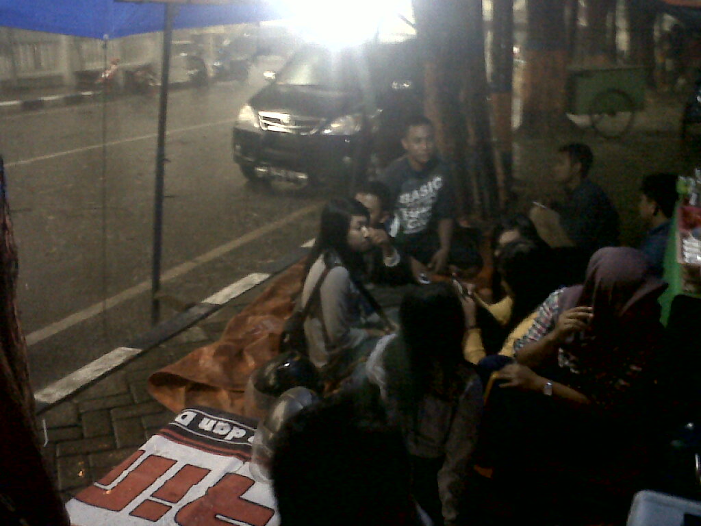 Pembaca setia blog Ndeso94. Tadi jam setengah 6 bersama sejumlah teman, mampir ke warung kopi PKL Bojonegoro dekat KPU. Nah, asyik-asyiknya nikmatin kopi tiba-tiba hujan turun dengan sangat deras. Tentu membuat kaget pelanggan lain tak terkecuali kami. Bahkan di warung-warung lain kelagapan semua karena hujan disertai angin yang kencang.