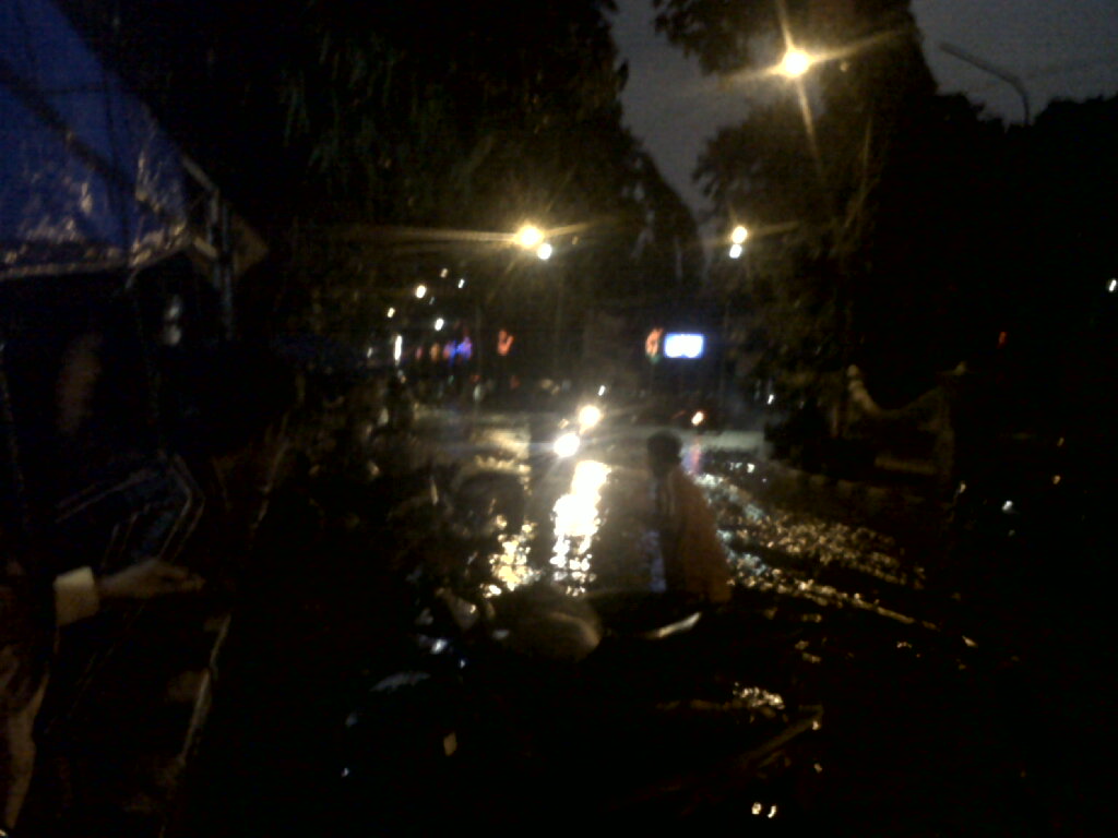 Hujan berlangsung sampai Magrib jam 06.05, walau begitu cukup untuk memmbuat banjir beberapa ruas jalanan kota. Edan. Kayak Surabaya kalo kehujanan gini.