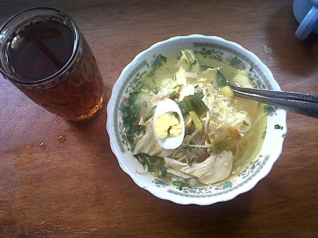 Nah, pagi-pagi tadi ane pas berangkat lupa sharapan. Daripada balik lagi udah jauh dari rumah, mending bablas ae nang kota. hehe. Keliling mengitari kota mencari tempat sharapan yang udah buka. Ane’pun menyambangi Warung Soto Lamongan : Cak No yang berada di sebelah Indomaret Banjarrejo Bojonegoro.