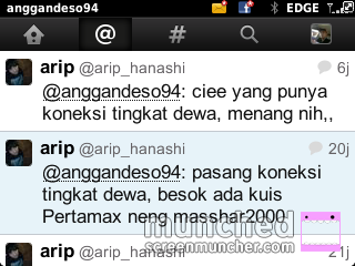 Sinyal dewa,ωk:D ωk:D ωk:D ™. Cuma pake sinyal BIS Telkomsel Simpati paketan full service + opera mini yang suka eror. Mungkin dah rejeki ya, soalnya tumben si opera mini kagak rewel tadi pagi. Hore… Pulsa gratis! 😀