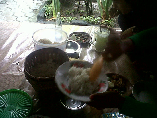 Cuaca yang makin deras, membuat mata mengantuk dan akhirnya leyeh-leyeh dulu. Eh tapi, tangan ane rasanya hangat ya? Istilah jawanya ‘wedangen’, gak tahu Indonesianya apa. Mungkin kebanyakan sambal yang dipegang tadi. Makannya dilalap kok,ωk:D ωk:D ωk:D ™.
