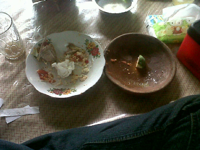Alhamdulillah, kenyang. Ane makan semua sama sambel-sambelnya, alhasil kepedasan ωk:D ωk:D ωk:D ™. Pedas’e untung tertolong hujan. Kalau enggak ya kepedasan terus.