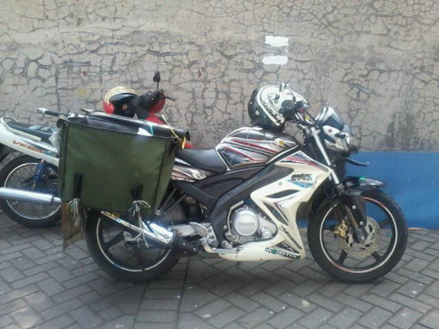 Kalau yang Vixion ini pernah mencatat rekor, sekali angkut bawa 2 karung beras 50 kg, 120 telur, 4 kresek masing-masing total 20kg, dan juga air mineral botol 2 kardus. Naiknya udah kayak naik motor ceper, mblesss stang kemudi kayak enggak stabil.