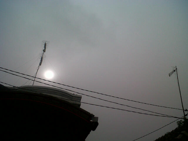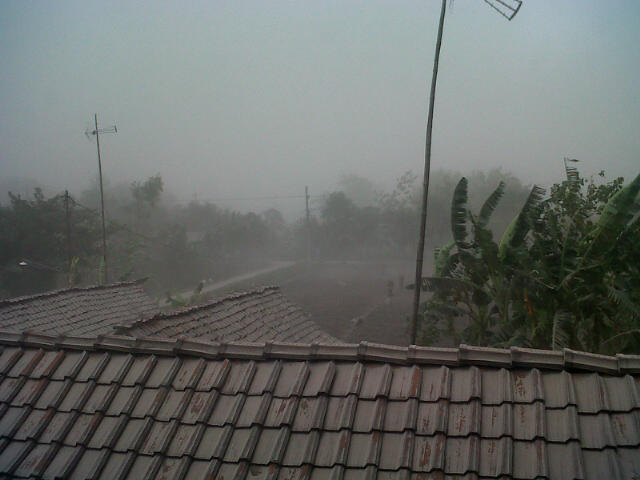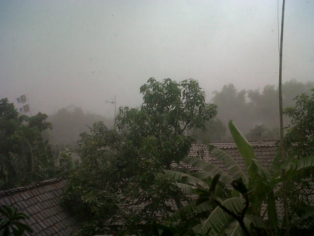 Ane share nih, akibat hujan debu yang menimpa dusun ane di dusun Bonturi, Desa Caruban, Kec Kanor, Bojonegoro. Paginya sih belum begitu tebal, lama-lama tebal kang sampai Jum’atan tadi. Monggo.