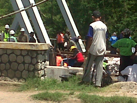 Percaya atau tidak, dua jembatan besar itu habis digeser alias dipindah posisinya menggunakan dua eskavator! Jembatan lama digeser dan ditambah dua jembatan baru yang lebih besar. Sayangnya ane telat, karena pada saat itu baru aja pulang dari kursus(kamis).