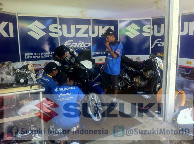 Tinggal 1 Team daytona dengan NVL dan team Suzuki dengan Satria FU. Untung aja deh ada Daytona, yang kebetulan mau meriset part balapnya. Tapi, ya tidak seimbang rasanya kalau tidak ada team pabrikan di sana.