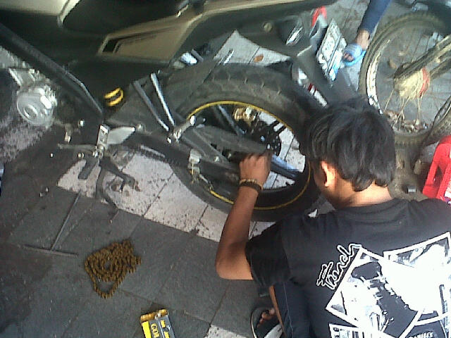 Ditebus 140 ribu di Toko & Bengkel variasi “3H Automotif” di daerah Bratang, Surabaya. Mau SSS tapi hargane nggilani 😀 . Maunya sih gear set tapi adanya sinnob yang harganya 500ribuan di sini. Kebetulan cuma bawa uang 200ribu, yaudah rantai doang. Buat satu bulan masih sanggup gearnya, gak angkut beban berat juga.hehehehe.