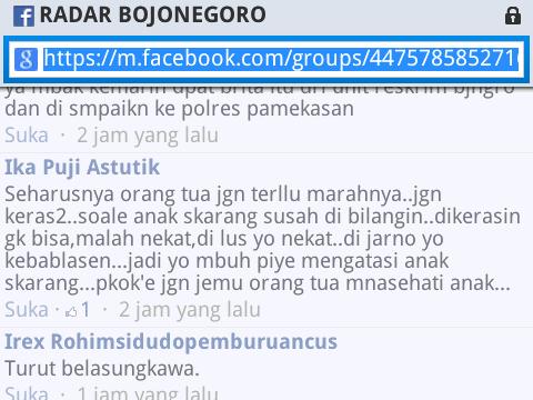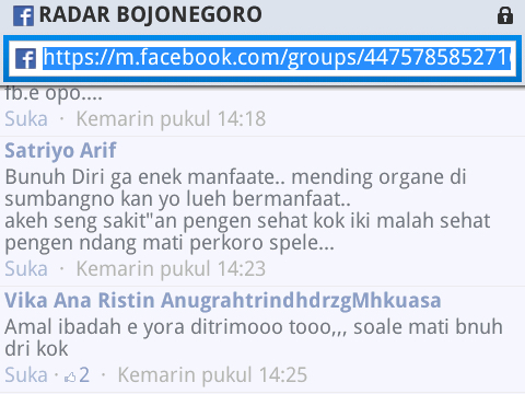 Seperti yang diberitakan dipostingan sebelumnya ( Klik Di Sini ), bahwa terjadi peristiwa bunuh diri yang melibatkan 1 orang siswi MTS Semambung Kanor pada pagi hari tanggal 28 kemarin. Ada beberapa informasi tambahan yang ane dapat dari group facebook Radar Bojonegoro tentang peristiwa ini.