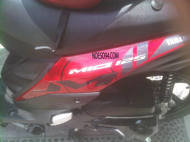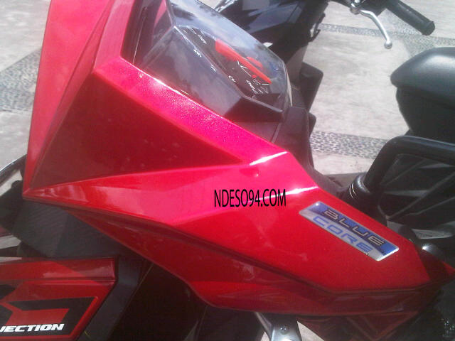 Striping minimalis, tidak lagi penuh warna warni kayak Mio J dengan tulisan Mio 125. Stangnya’pun ada logo blue core, wah sip… Nyari embled blue core ah xixixix. Tampilan mesin nyaris sama dengan Mio generasi kedua YMJet-FI. Jadi heran, Blue Corenya di mana yak. Apa di sisi kelistrikan ECU, Trotle body, atau sensor-sensornya? Mumet mikir.
