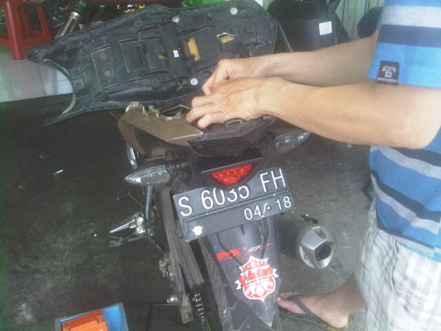 Mendapatkan harga Rp 45.000 di 3H, bro ndess langsung meluncur ke bengkel langganan di Manyar. Bengkel 3H lagi ramai, ogah antri jam-jaman cuman buat masang 1 barang simpel.wkwkwk. Pemasangannya’pun pakai sistem tempel dengan double tape tipe busa hitam yang kuat dan tahan lama.