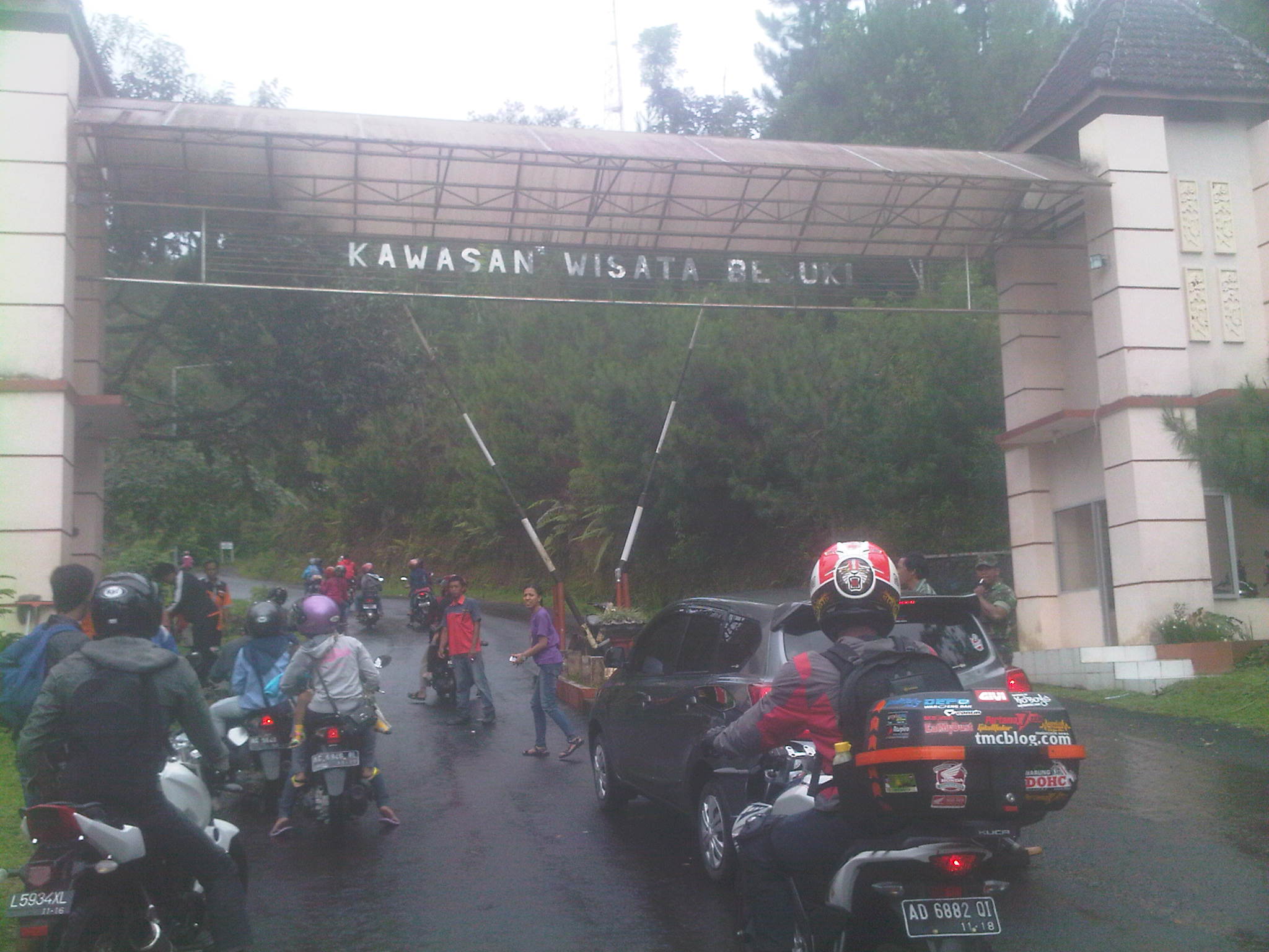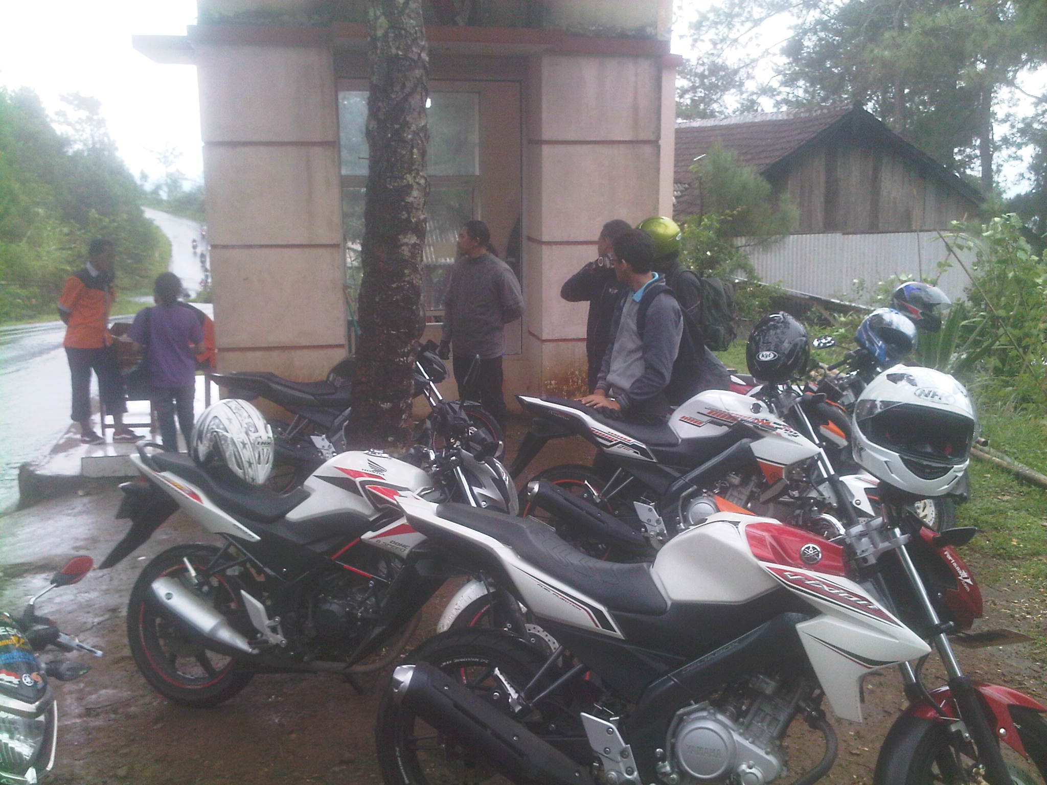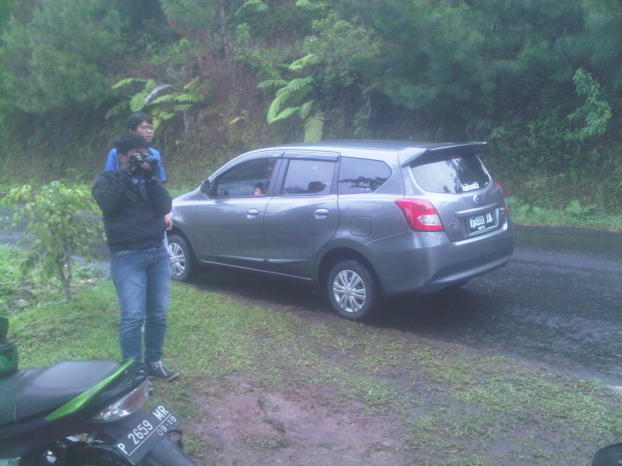 Jam 8 lebih 30 menit, semuanya sudah bersiap rolling ke tempat wisata Air Terjun Irenggolo yang terletak di Kawasan Wisata Besuki. Lumayan jauh lokasi dari TKP bro ndess yaitu hotel Bismo. 30km’an lebih. Apalagi di kawasan perbukitan itu dilanda hujan rintik, membuat jalanan licin. Di sini motor-motor diuji handlingnya serta Datsun Go+ milik kang Rio juga di test kuat tidak buat naik gunung.