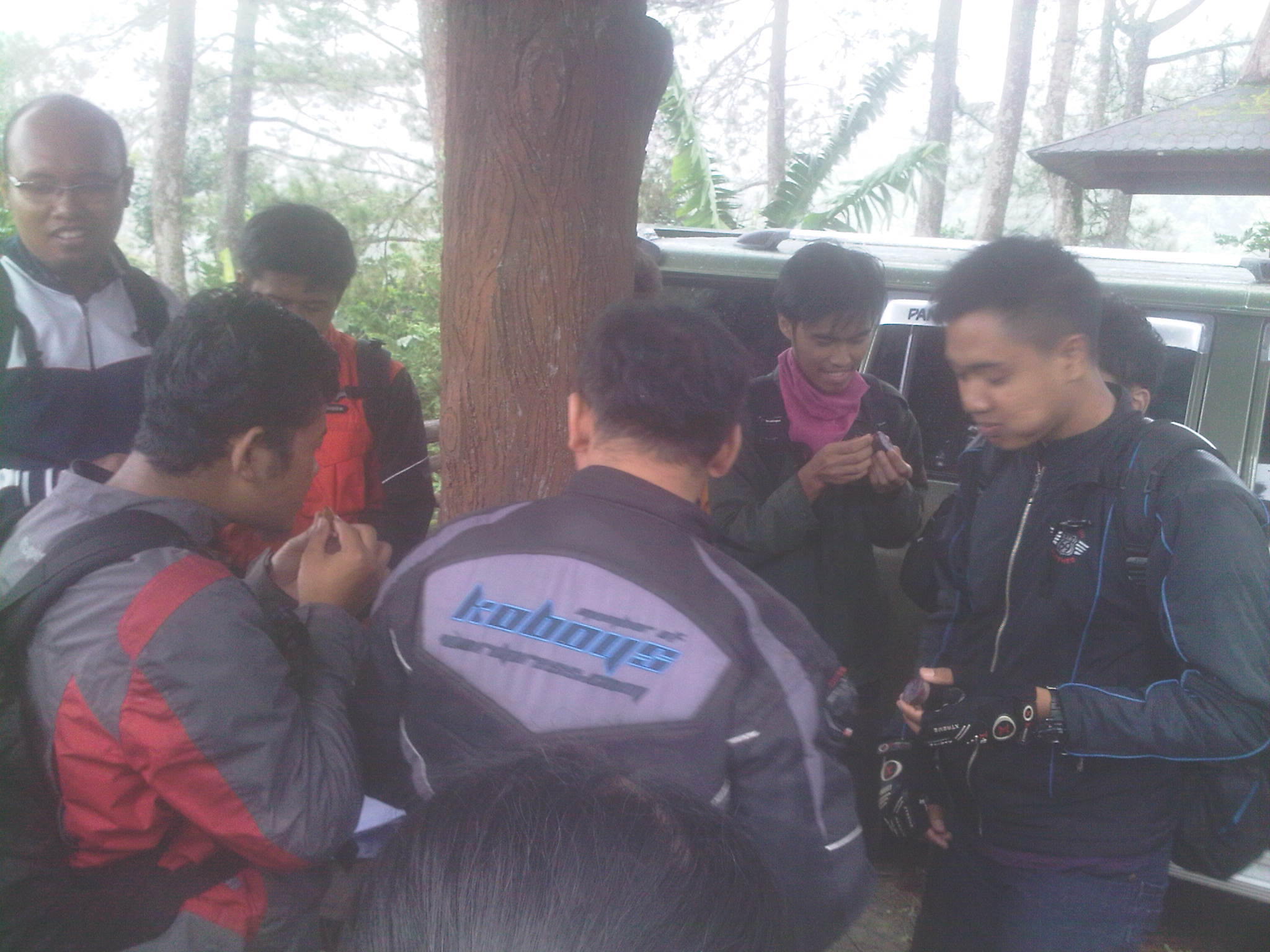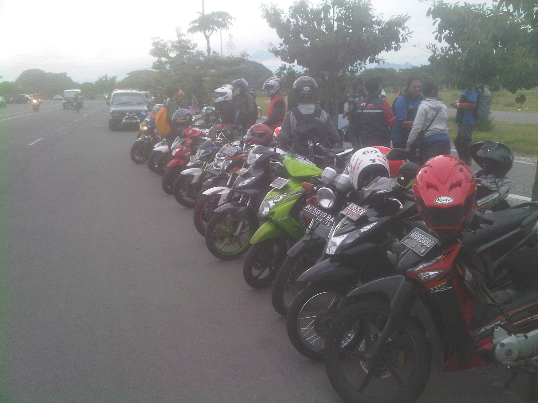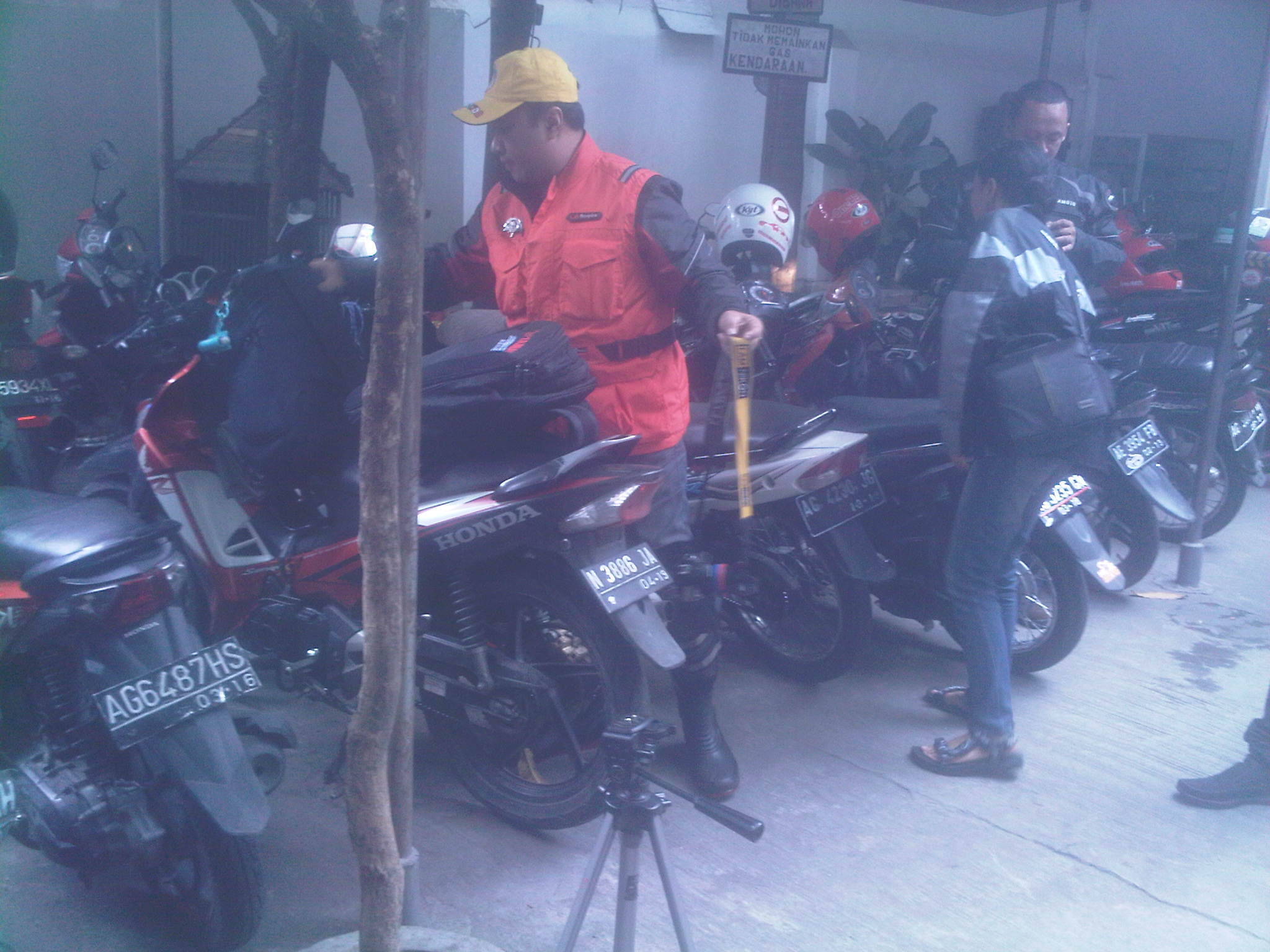 Jam 8 lebih 30 menit, semuanya sudah bersiap rolling ke tempat wisata Air Terjun Irenggolo yang terletak di Kawasan Wisata Besuki. Lumayan jauh lokasi dari TKP bro ndess yaitu hotel Bismo. 30km’an lebih. Apalagi di kawasan perbukitan itu dilanda hujan rintik, membuat jalanan licin. Di sini motor-motor diuji handlingnya serta Datsun Go+ milik kang Rio juga di test kuat tidak buat naik gunung.