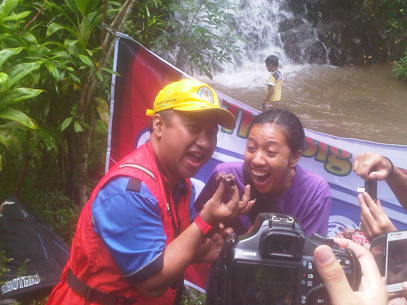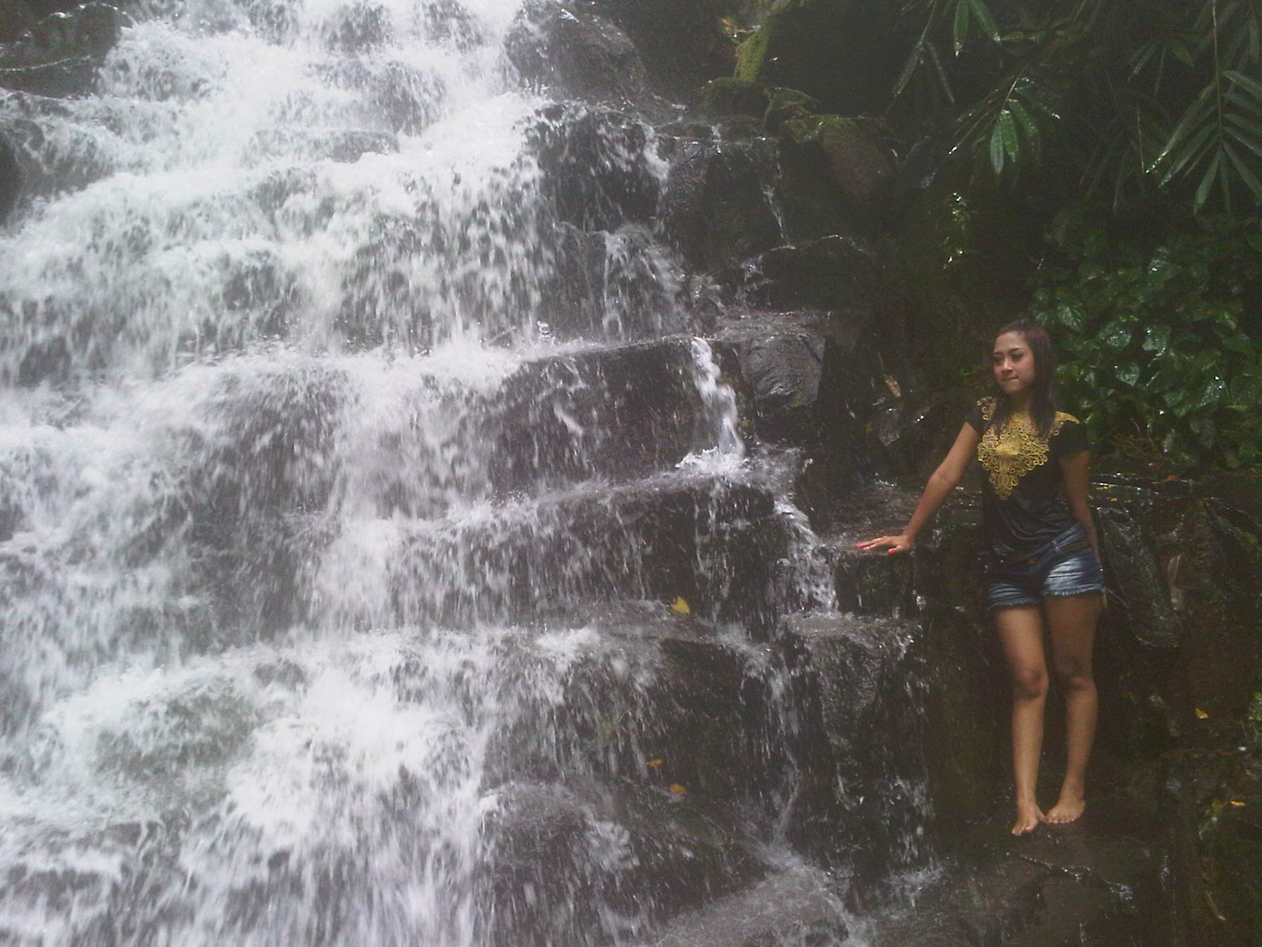 Lokasi ini juga ada sesi photo model. Walau cuma pakai BB, bro ndess ikut jepret :v tapi model yang jadi objek bener-bener profesional. Walau cuma pakai BB, orange juga bergaya saat bro ndess mengarahkan kamera si lemot ke arah model :v Air terjun ini akan brondess bahas terpisah dan khusus. Oh iya, di sini lokasinya bener-bener sejuk dan rindang sekali pepohonan dan tumbuhan paku.