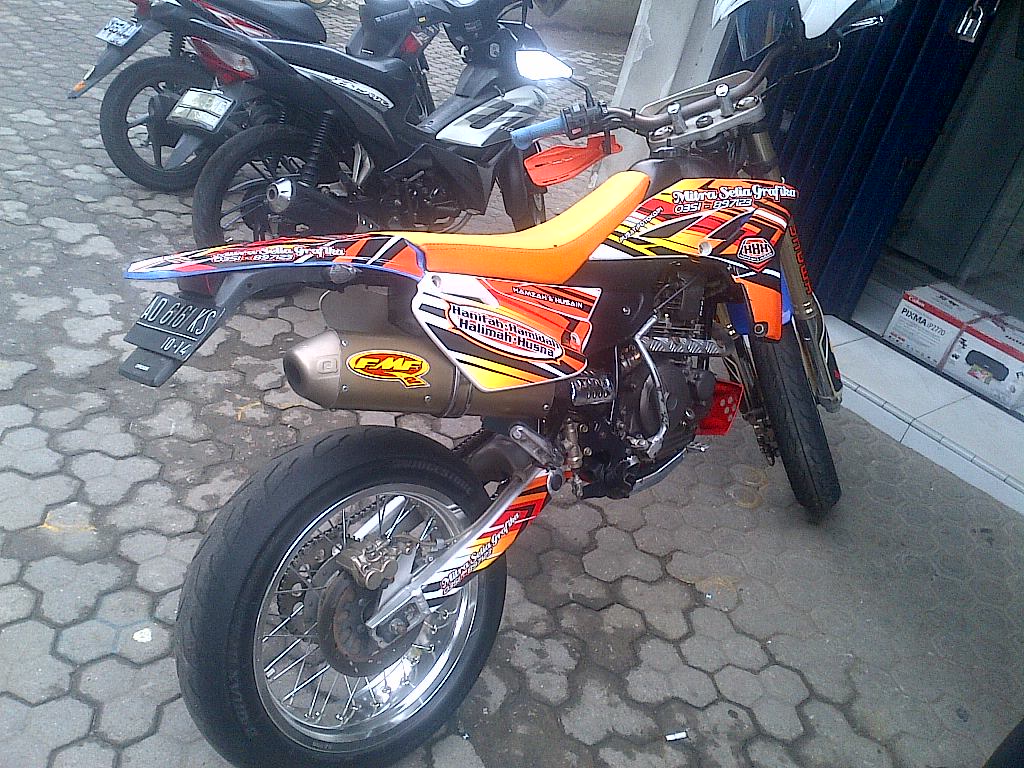 Kemarin pagi, bro ndess bertemu sebuah Yamaha Scorpio Z modifikasi supermotor. Kelihatan dirombak total nih sehingga sosok Scorpio hanya tertinggal mesinnya aja! Mulai dari kaki-kaki, body semuanya dirombak abis menjadi sebuah supermoto.