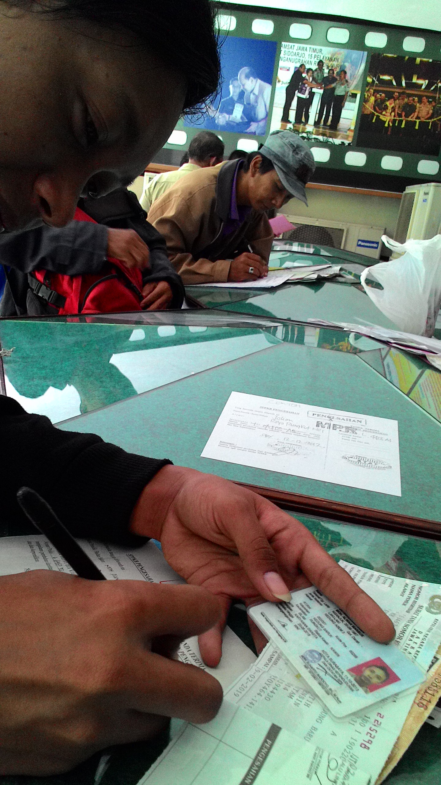 Berangkat ke loket nomor satu buat ngambil kertas kemudian mengisi kolom yanh disediajan. Lalu menuju loket pengesahan pajak tahunan. Kemudian menuju ke kasir pembayaran. Ternyata lancar juga brosis.