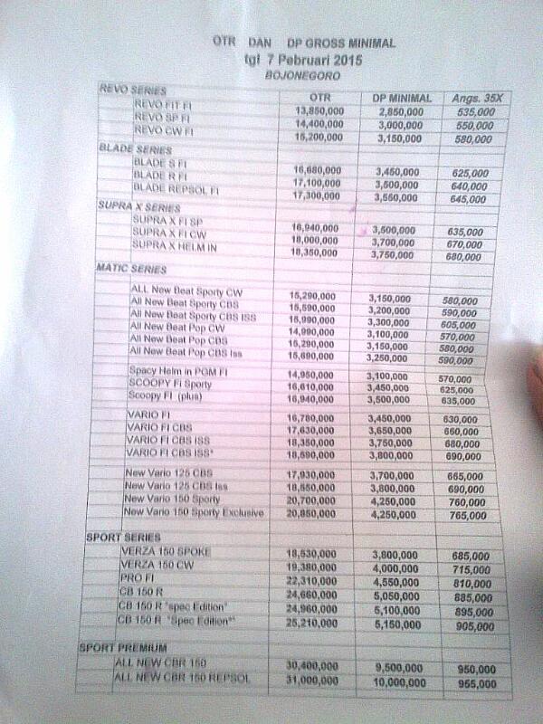 Moga membantu. Harga tersebut di dealer SGM motor Kapas Bojonegoro.