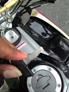 Biaya lumayan murah dari prakiraan. Nah, problemnya sekarang bagaimana membuka tangki seret. Bro ndess akali dengan membuka kunci L tangki dan juga tang. Akhirnya bisa. Untuk membuat tutup tangki bisa rapat, bro ndess pakai kain atau kresek..