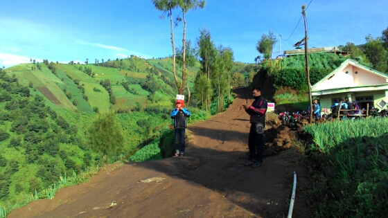 Setelah puas melepas lelah dan foto. Kami lanjutkan perjalanan menuju ke portal. Dan bersiap melahap nerakanya B29. Di portal ini kami bayar bea masuk 3rb/orang. Oh iya, di sana para rombongan Surabaya Motor Touring gak ada yang naik ke B29 denfan motor. Waduh, padahal sebagian besar motornya Vixion/NVL. Ada juga Ninja R, kalau ini sih kondisi standart Ninja gak akan bisa muncak.