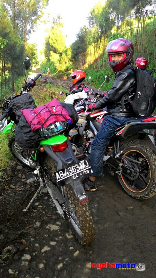 Saat itu, sebagian rombongan Surabaya Motor Touring juga bareng kami ke atas. Saat melewati rintangan ke satu dan ke dua. Kami ketemu NVL yang kampas koplingnya habis. Sepertinya tahun 2013 nih kalau lihat warna strip dan motor. Pantes…. belum pernah ganti juga paling. Si Gold sendiri untung dibantu kampas GL yang lebih mengigit. Walau pakai ban slick masih bisa naik tanpa gosong.
