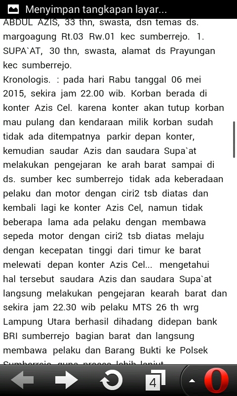Adalah M Taqwa Saputra, 26thn, Candimas kec Abung Selatan, Lampung Utara tertangkap saat membawa kabur Honda BeAt putih milik Doni Dwi Ardianto, 21thn, warga Margoagung, Sumberrejo, Kec Sumberrejo, Bojonegoro. Pelaku tertangkap setelah dikejar di depan BRI Sumberrejo.