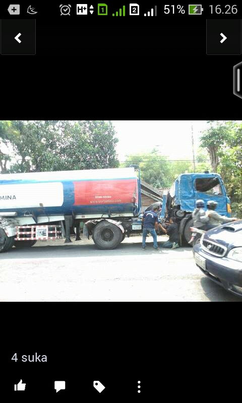 Keep safety drive and ride. Keluarga menunggu di rumah. Di bawah kondisi Truk Tangki, yang bro ndesd screenshoot dari Facebook.
