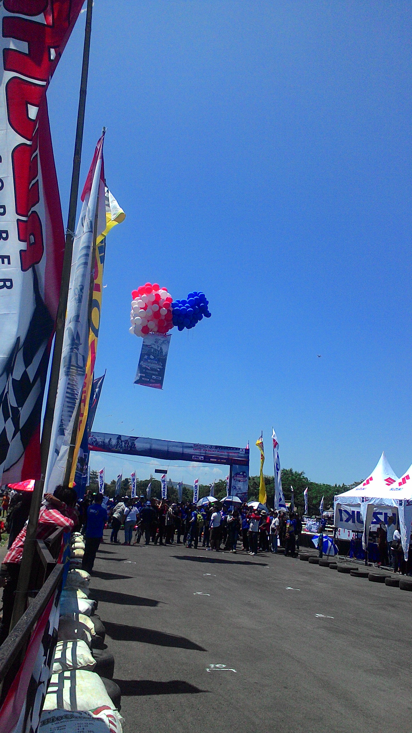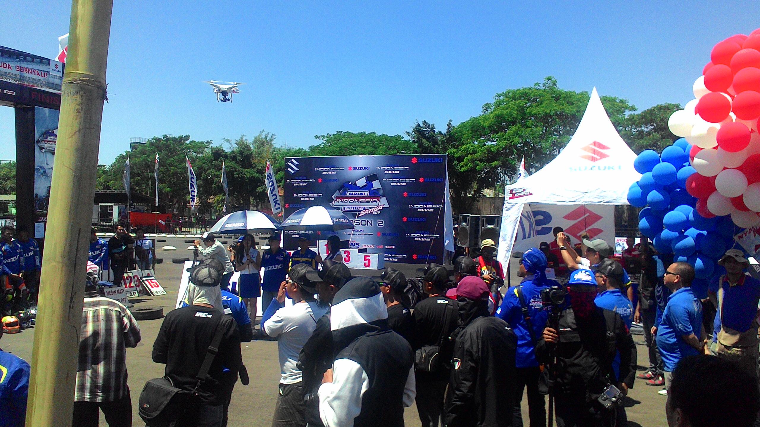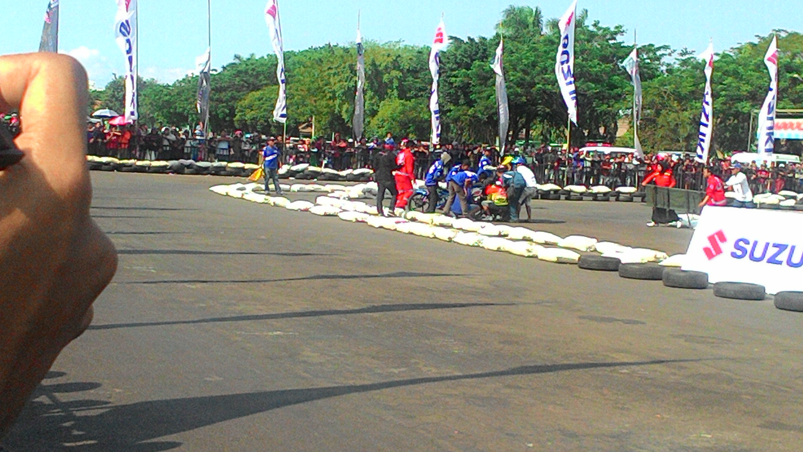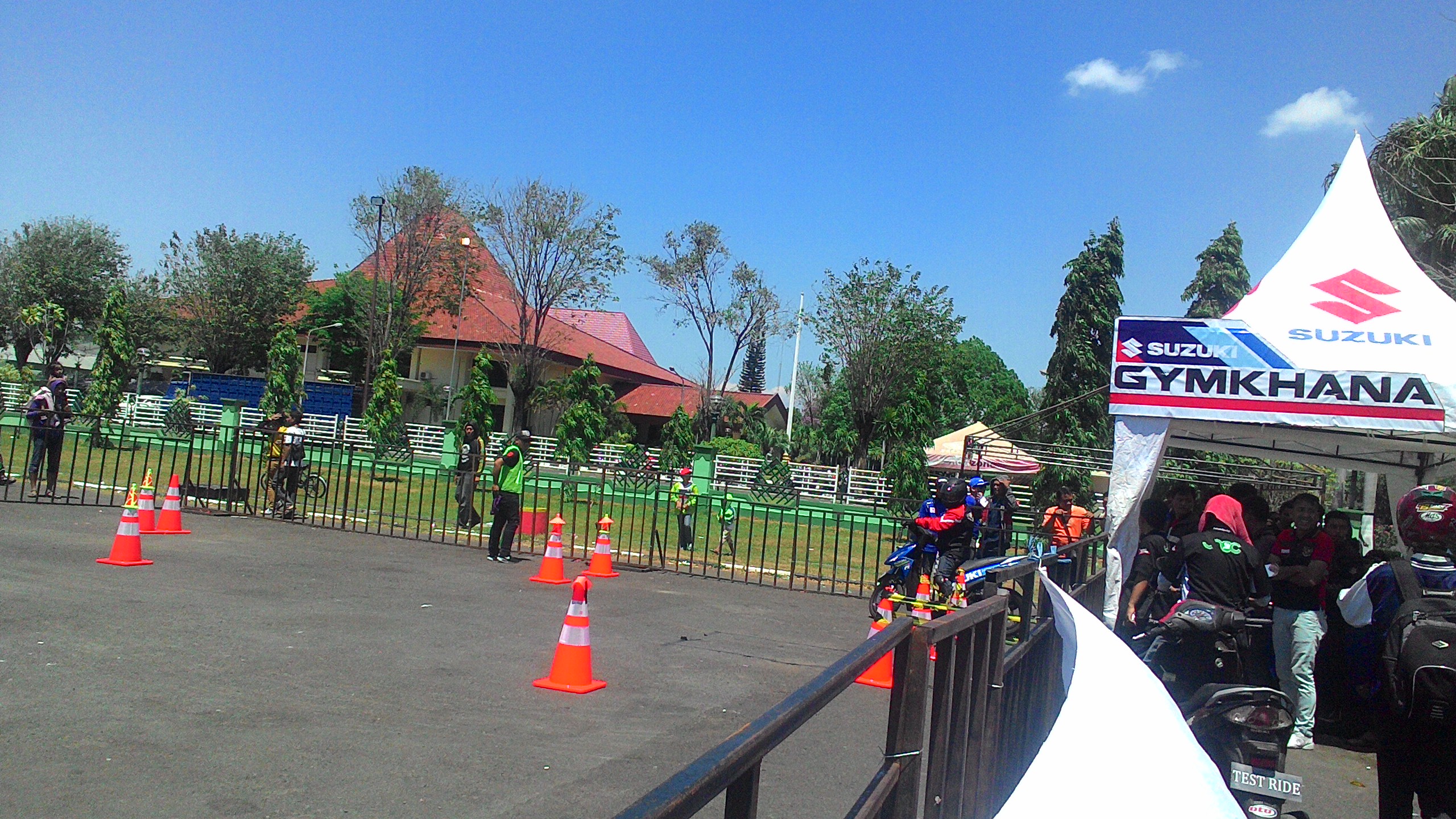 Event ini diikuti pembalap-pembalap pemula dari seluruh Jawa Timur. Usianyapun muda-muda. Mulai dari 13tahun. Oh iya, motor sudah disediakan panitia dengan setingan sederhana, cukuplah buat digeber semial ban, knalpot, gear set, footstep, CDI/ECU, dan aki. Suzuki juga mengundang klub-klub motor Suzuki di Surabaya untuk menghadiri event ini. Ada acara khusus penonton yaitu Event Suzuki Ghymkhana yang berada di pojok event. Memakai Suzuki Adress, peserta dituntut menyelesaikan dengan sempurna dan waktu tercepat di lintasan yang sudah disediakan. Bro ndes kalah di event ini 😦