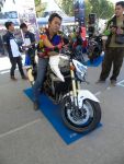 Moge ini dipajang bersma Burgman 200 di acara Suzuki Satria Challenge kodam kemarin. Secara kasat mata ini motor benar-benar big size. Seakan membulat. Kaki-kakinya sendiri kekar sekali. USD depan khas moge, dan ban belakang yang besar. 200an mungkin.