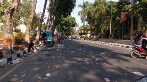 Namun sayang, pada tidak tertib sampahnya. Tapi tenang, ada pasukan kuning dan para pemulung yang siap membersihkan. Harusnya ada tambahan nih buat para pasukan kuning karena sampahnya gak cuma satu ruas jalan doang, tapi banyak. Entah kenapa walau ada tempat sampah, penonton lebih memilih asal buang. Lebih praktis sih, dan bro ndess tidak bisa membantah alasan ini.