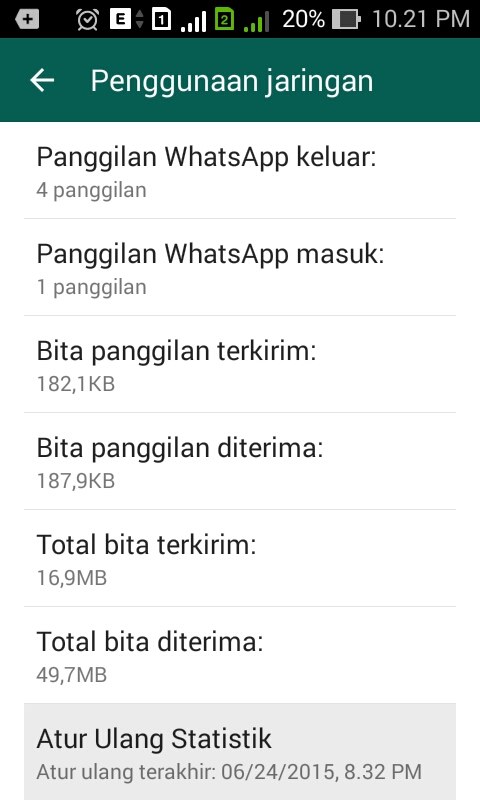 4. Pilih “network usage” / “Penggunaan jaringan”, kelihatan berapa Kb yang terpakai.