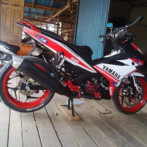 Ya karena tak merubah body dan rangka. Modifikasi yang dilakukan dengan merubah warna asli menjadi livery motoGP. Undertrail dilepas. Pemakaian underbone footstep yang senada warnanya.