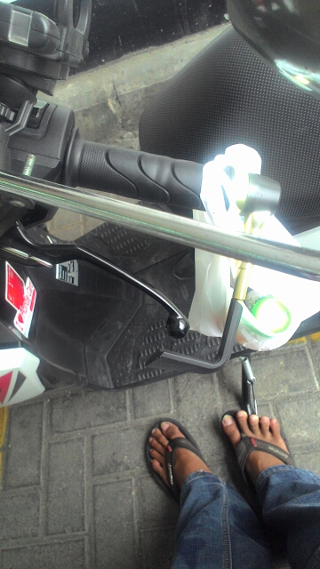 Pengalaman terjatuh kemarin, posisi seperti ini mampu menahan posisi motor juga.