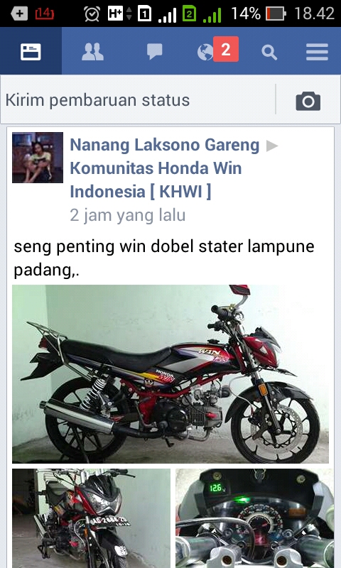 Brosis, Honda Win adalah motor sport 100 cc dari Honda yang sempat ngetrend dulu, dan sampai sekarang masih banyak penggemarnya. Nah, di group KHWI ini ada modifikasi Honda Win yang cukup modern nih.