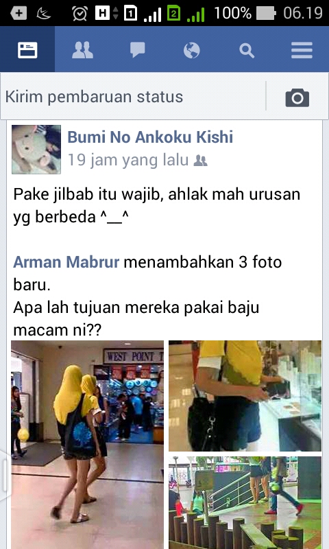 Entah apa landasan mereka begini. Mungkin mereka melakukan anjuran berjilbab saja, bukan berhijab. Malah rekan bro ndess ini mengomentari, “Pake jilbab itu wajib, akhlak mah urusan yg berbeda ^______^”