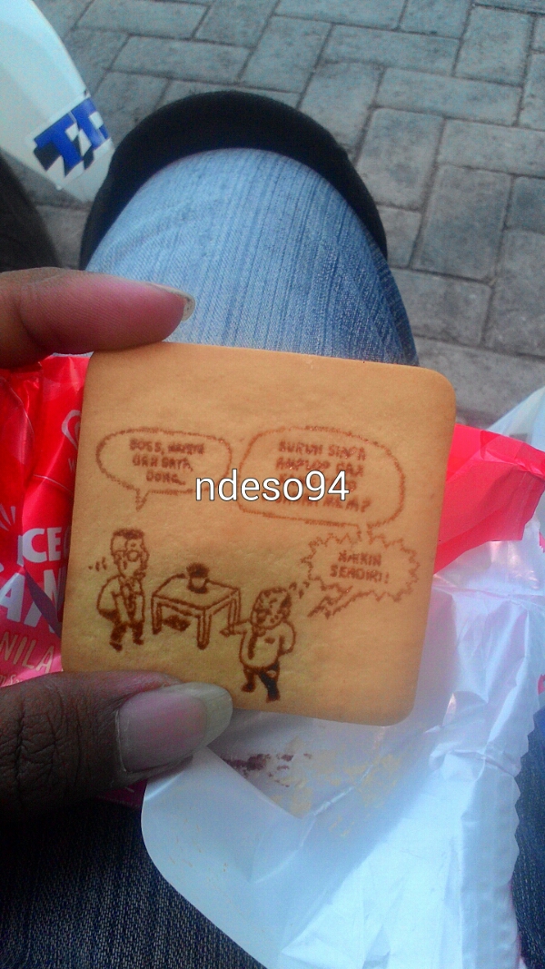 Yang unik adalah, di roti luar Ice Cream Sandwich. Ada komik mini humor, masing-masing berbeda cerita bahkan antara roti atas dan bawah beda cerita. Unik, kreatif. Mau mencoba? Rp 6.500 di outlet yang menjual Walls 😀