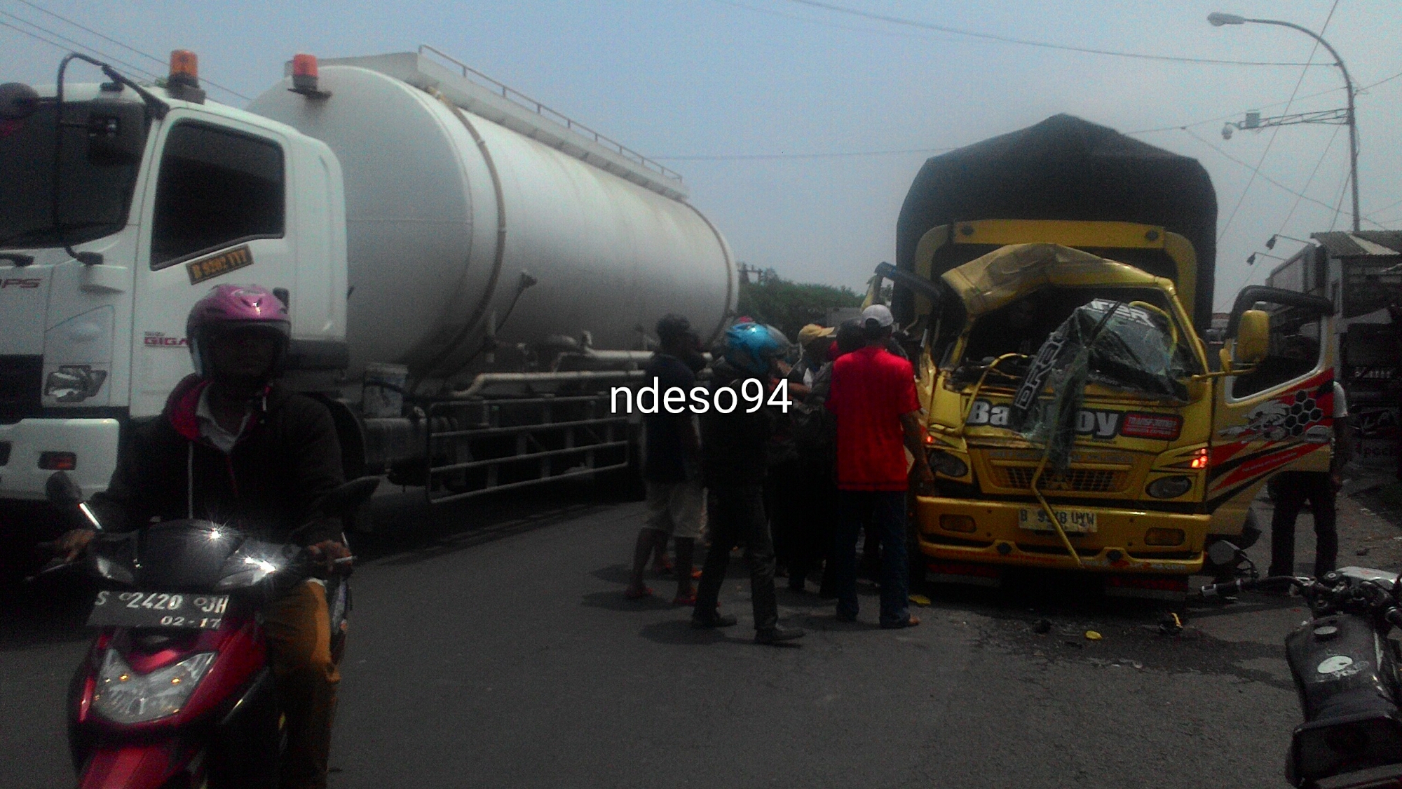 Brosis, tadi jam 11 tanggal 4 Jan 2016 saat bro ndess lewat Duduk Gresik. Terjadi sebuah kecelakaan yang melibatkan 1 dump truck dan 1 truck canter. Kejadian tidak sampai membuat macet.