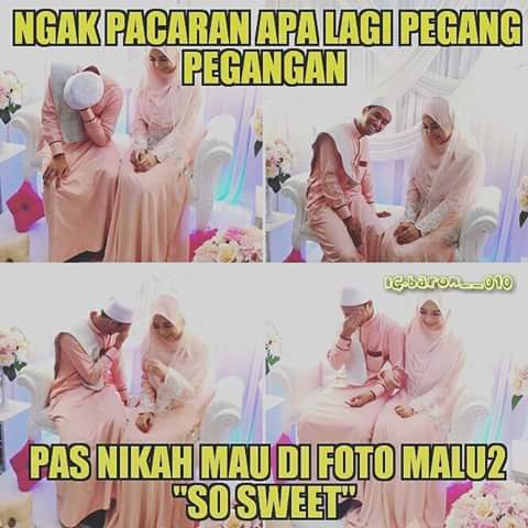 Dua manusia yang tak pernah bersentuhan sebelum kahwin dan disatukan dalam ikatan suci pernikahan. Saat mau berfoto diatas pelamin malu malu. Haha. Sweet…