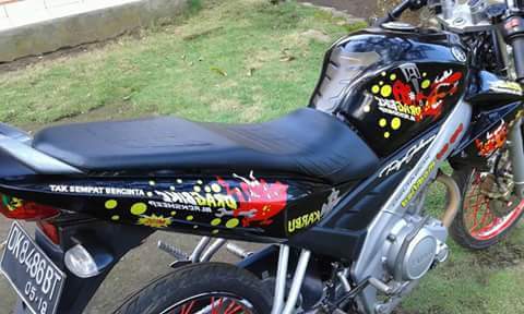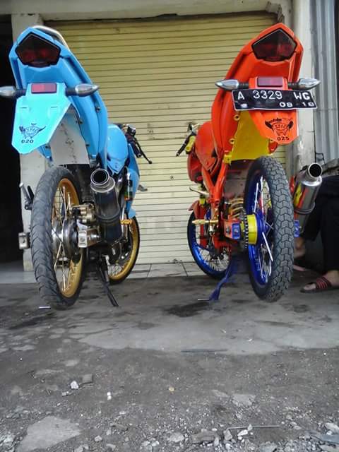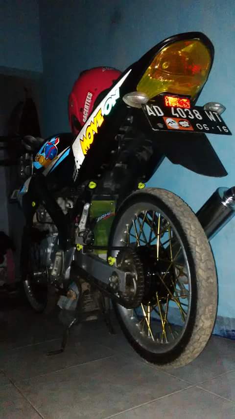 Oh iya, cutting stiker maupun airbrushnya bisa ditiru nih yang sudah bro ndess lampirkan tadi, lumayan yang mau modif minimalis dengan main grafis dibody. Di tambah memadukan warna warna baik di velg maupun rangka.