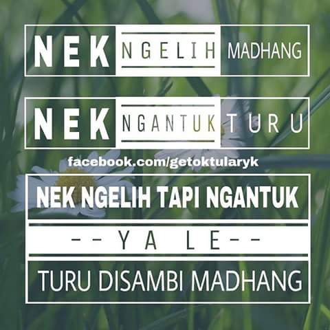 Nah, setelah sebelumnya terbit quotes jawa part 1. Kini bro ndess akan share part 2nya. Dengan kata kata yang lebih kocak, lucu, namun sarat arti mendalam. Kata kata ini biasanya dipakai dalam pergaulan sehari hari, atau saat menasehati orang lain.