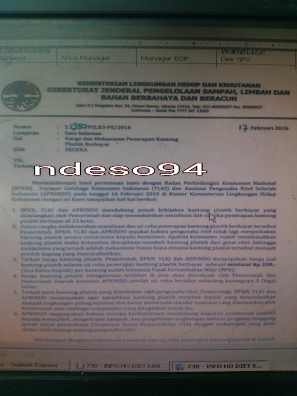 Program ini diadakan karena Indonesia menjadi negara dengan limbah plastik terbesar ketiga di dunia. Untuk mengurangi jumlah limbah yang timbul, maka diterapkan program ini supaya jumlah limbah plastik dapat ditekan. Bukan buat meraup uang loh…. kelak jika program ini berhasil, akan dibuat program CSR sebagai program dari dana yang terkumpul dari program plastik berbayar ini. Ada pertanyaan? Bro ndess menulis ini berdasar pengumuman dari kantor tentang SOP program.