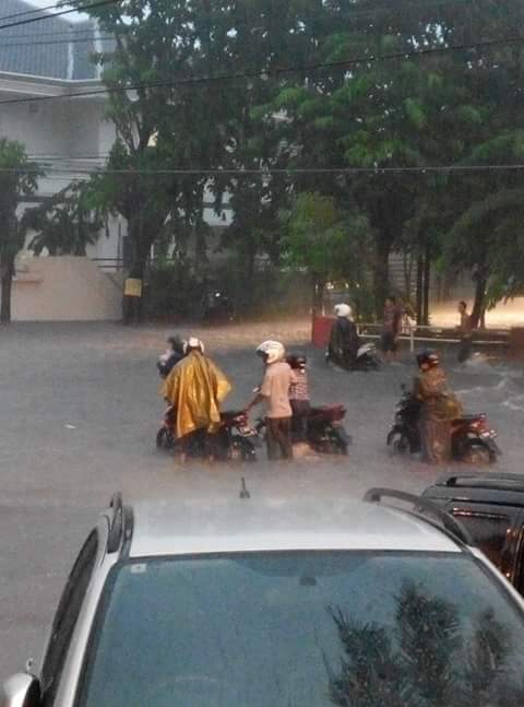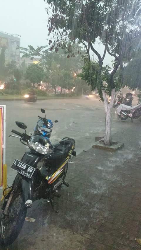 Brosis, hari ini Surabaya diguyur hujan deras sekali. Hujan sepanjang sore hingga malam tadi mampu menenggelamkan beberapa tempat seperti Wiyung, HR Muhammad, dan beberapa perumahan elite Surabaya barat. Mengerikan brosis. Rata rata ketinggiannya 20cm hingga selutut.