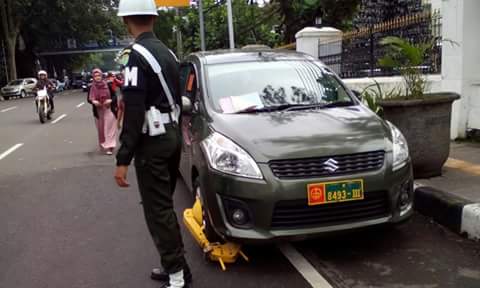 Keren, mobil dinas TNI digembok karena parkir sembarangan