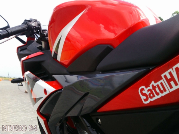 Tampilan sih oke banget. Buat yang warna merah, paling keren. Yang putih emmm entah kenapa kurang sreg ya, catnya kayak mirip motor minerva. Kalau yang merah benar benar keren, livery tim ART.